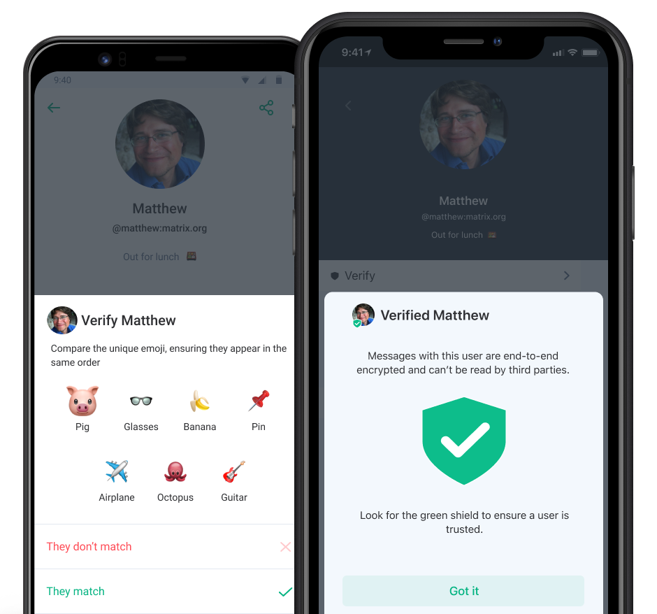 Whether self-verifying, or verifying others' devices, the actual authentication process is wonderfully straight-forward. Users simply compare on-screen emojis, or scan a QRÂ code.